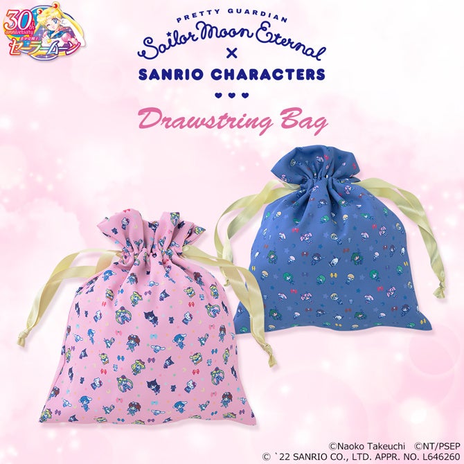 リボン巾着 全2種(セーラー5戦士×サンリオキャラクターズ柄、スーパーセーラーちびムーン・外部太陽系4戦士×サンリオキャラクターズ柄)