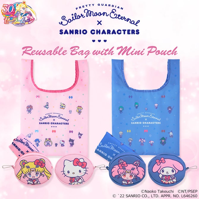 ポーチ付きエコバッグ 全2種(セーラー5戦士×サンリオキャラクターズ柄、スーパーセーラーちびムーン・外部太陽系4戦士×サンリオキャラクターズ柄)
