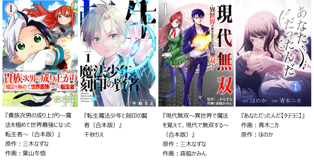 このほか「異世界」「令嬢ロマンス」「ヒューマンドラマ」「エッセイ」など各ジャンルの作品や「タテヨミ」作品が600冊以上!ぜひ、新たな作品との出会いをお楽しみください。