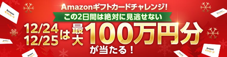 概要:12/24, 25の2日間、「待てば¥0」で作品を読むだけでAmazonギフトカード最大100万円分が当たるチャンス。