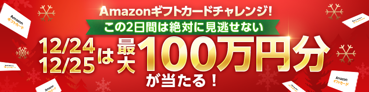 概要:12/24, 25の2日間、「待てば¥0」で作品を読むだけでAmazonギフトカード最大100万円分が当たるチャンス。