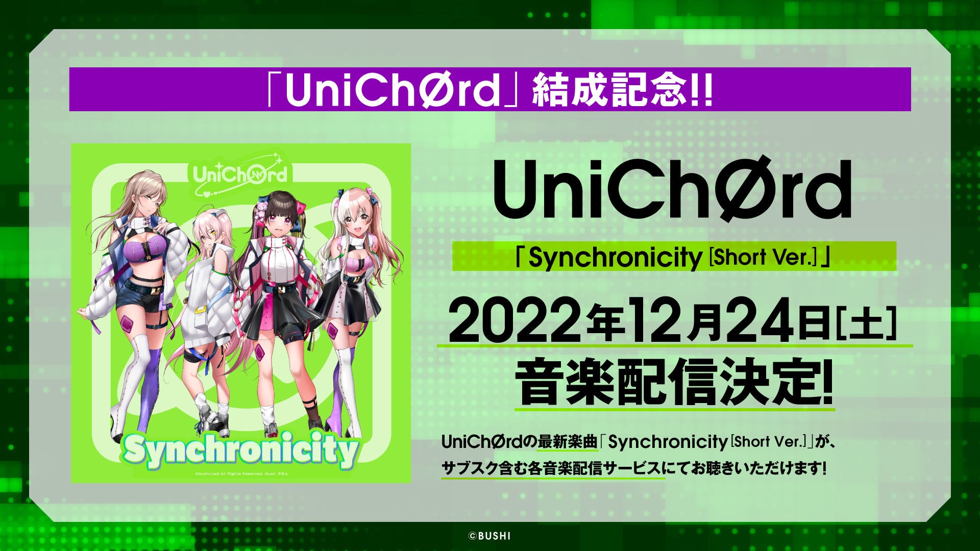 ➁新ユニット「UniChØrd」結成を記念して、初のオリジナル楽曲「Synchronicity(short ver.)」が配信中!