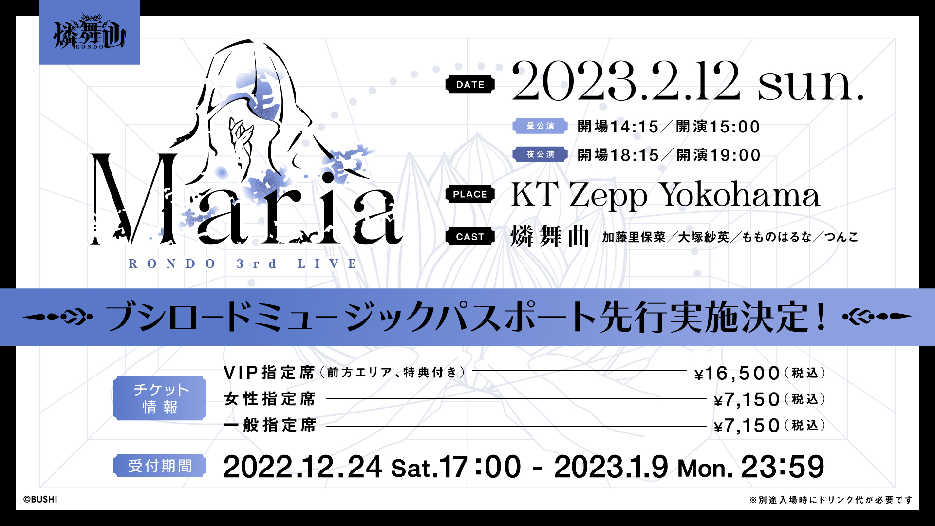 ・2023年2月12日(日)開催 燐舞曲 3rd LIVEのライブタイトルが「燐舞曲 3rd LIVE -Maria-」に決定!さらに、ブシロードミュージックパスポート先行が受付開始!