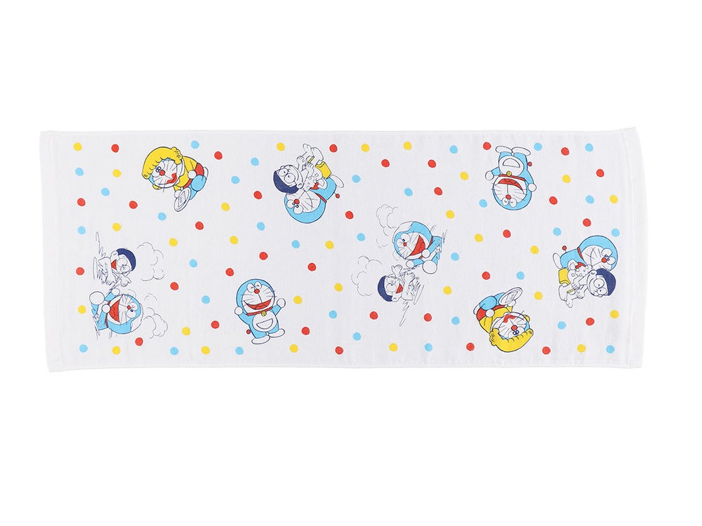 てんとう虫コミックス『ドラえもん』6巻より「温泉旅行」のお話をテーマに、ひみつ道具の「室内旅行機」で温泉旅行気分に浸るドラえもんとのび太のイラストを、バスタイムにぴったりのアイテムにデザインしました。