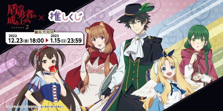コラボカフェやイベント、アニメ、キャラクター、スポーツの商品製作・企画・販売・OEMを行う株式会社サイバーネット営業3部は、運営するオンラインくじサービス「推しくじ」において、TVアニメ『盾の勇者の成り上がり Season 2』のオンラインくじを開催いたしました。同くじは2023年1月15日(日)まで販売。