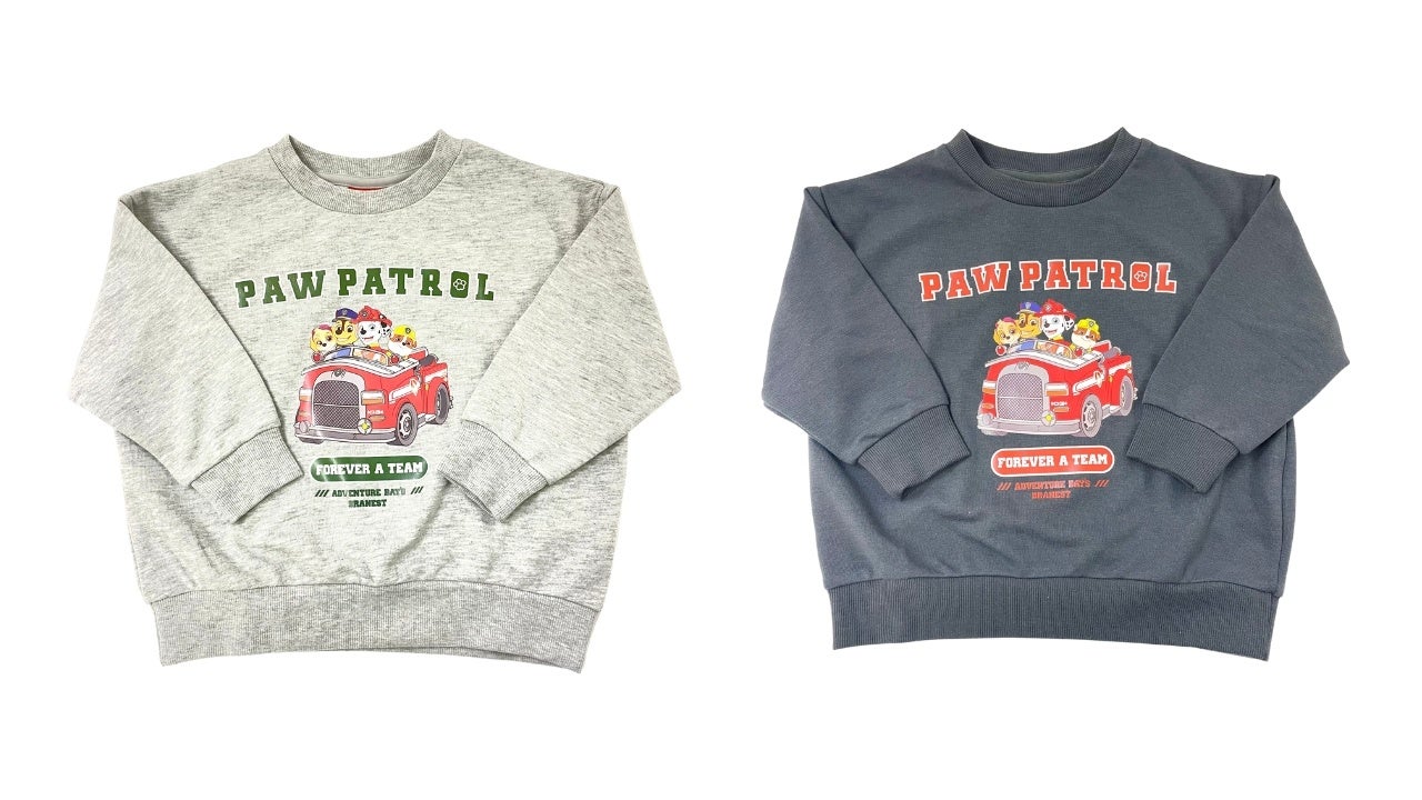 ■パウ・パトロール カレッジ風トレーナー 集合(グレー/スミクロ):各2,750円(税込)