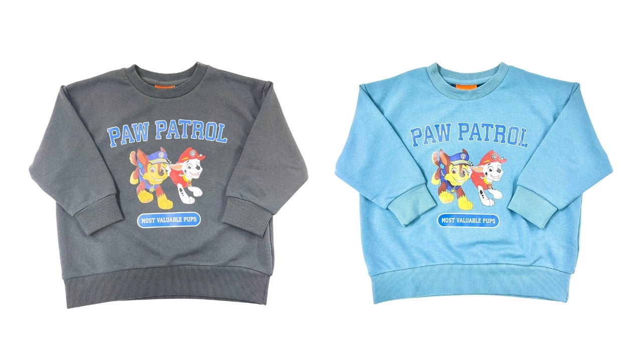 ■パウ・パトロール カレッジ風トレーナー チェイス&マーシャル(スミクロ/ブルー):各2,750円(税込)