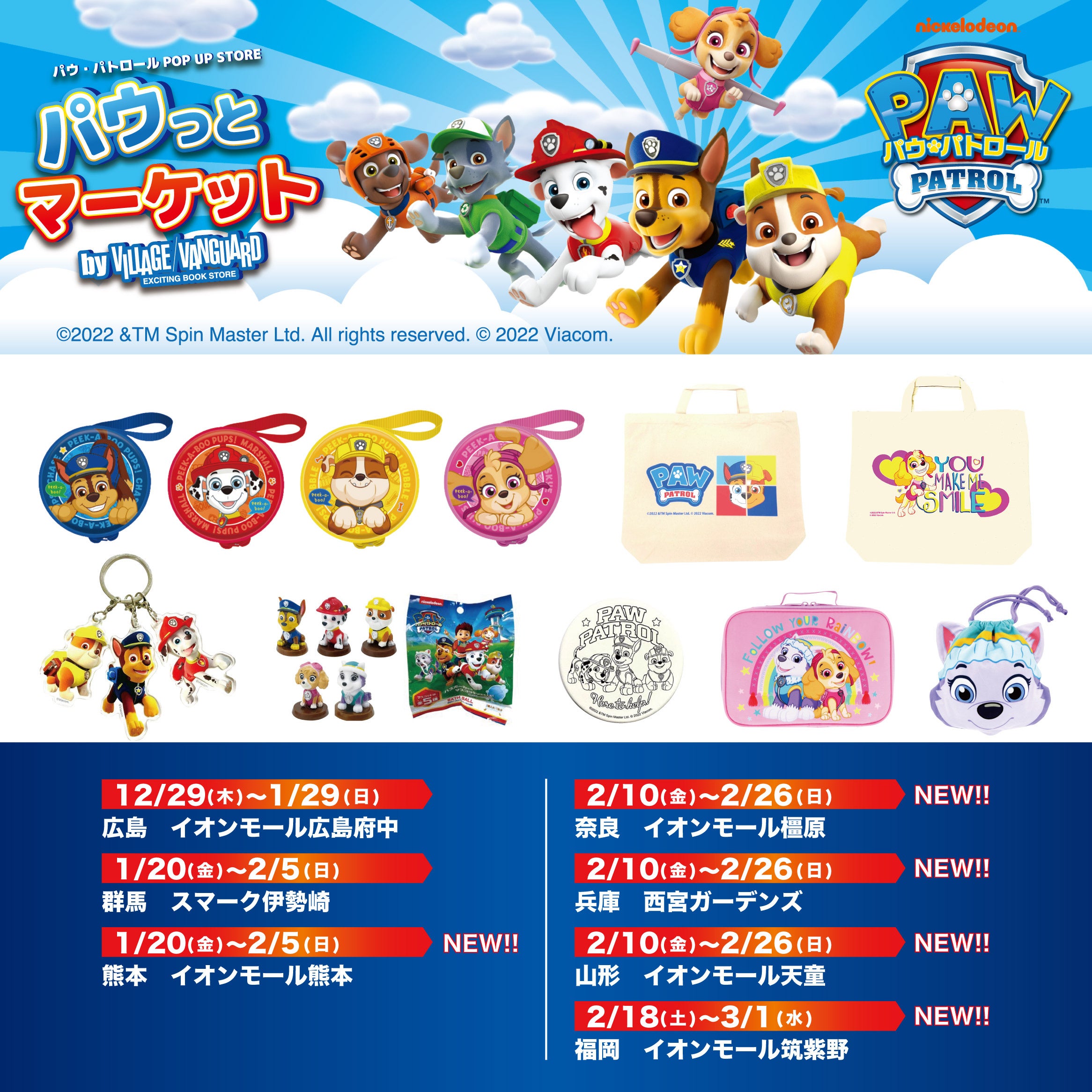 株式会社ヴィレッジヴァンガードコーポレーション(所在地:愛知県名古屋市、代表取締役社長:白川篤典)は、大人気プリスクール向けアニメ「パウ・パトロール™」のPOP UP STORE『パウっとマーケット -by VILLAGE VANGUARD-』において、2022年12月29日(木)より限定販売のアパレルアイテムの発売を決定いたしました。さらに、新たに熊本県と兵庫県での開催も決定いたしました。