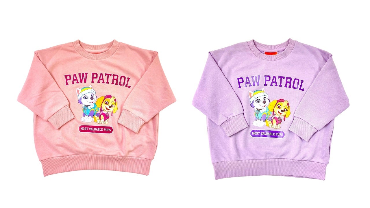 ■パウ・パトロール カレッジ風トレーナー エベレスト&スカイ(ピンク/ラベンダー):各2,750円(税込)