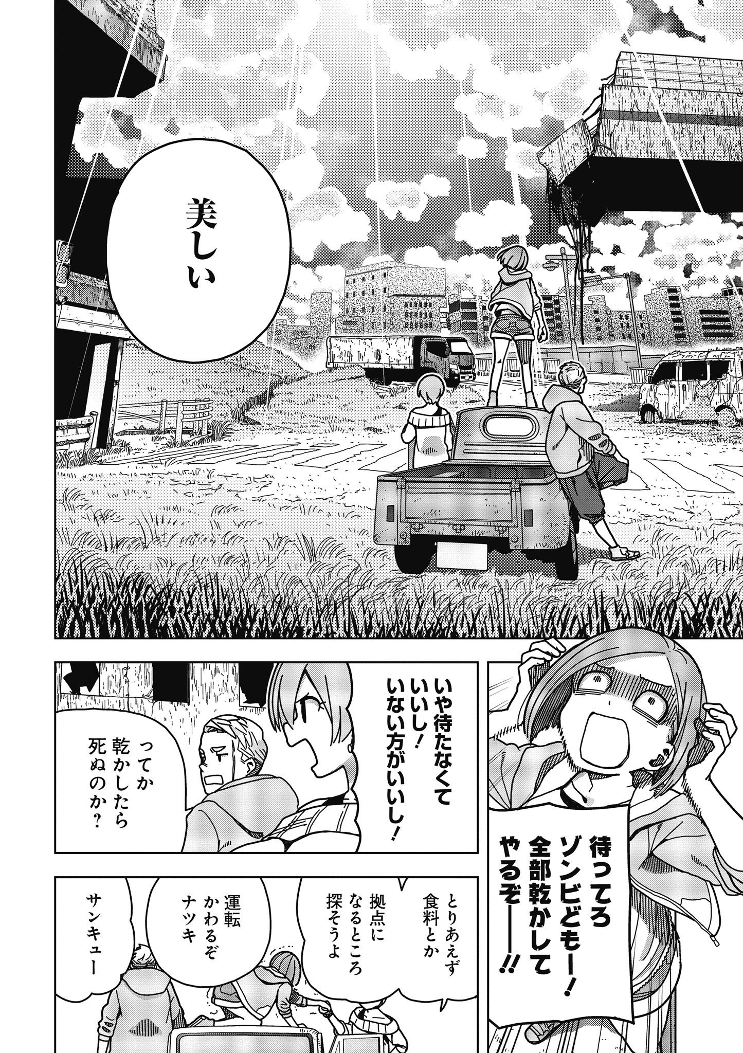 壊滅前の世界を記憶していないアキは父親をさがすため、仲の良いハル、ナツキと共に村を抜け出す。