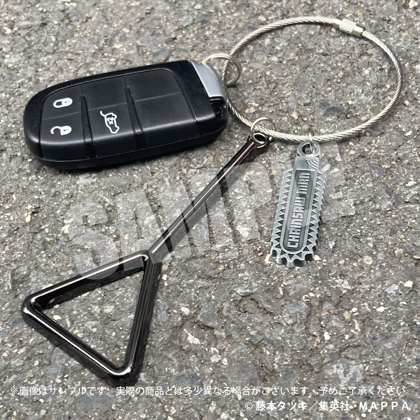 ▲主人公「デンジ」の胸元のスターターロープを大胆にキーホルダーに仕上げました。