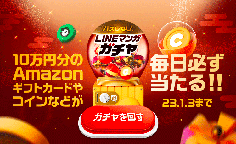 LINE Digital Frontier株式会社 (本社:東京都新宿区、代表取締役:金信培(キム・シンベ)/髙橋将峰) は、当社が運営する電子コミックサービス「LINEマンガ」https://manga.line.me/ において、開催中のキャンペーン「LINEマンガ祭 22-23」の特別企画として、本日12月28日(水)より、10万円分のAmazonギフトカードやマンガコインなどが当たる「LINEマンガガチャ」を開催します。