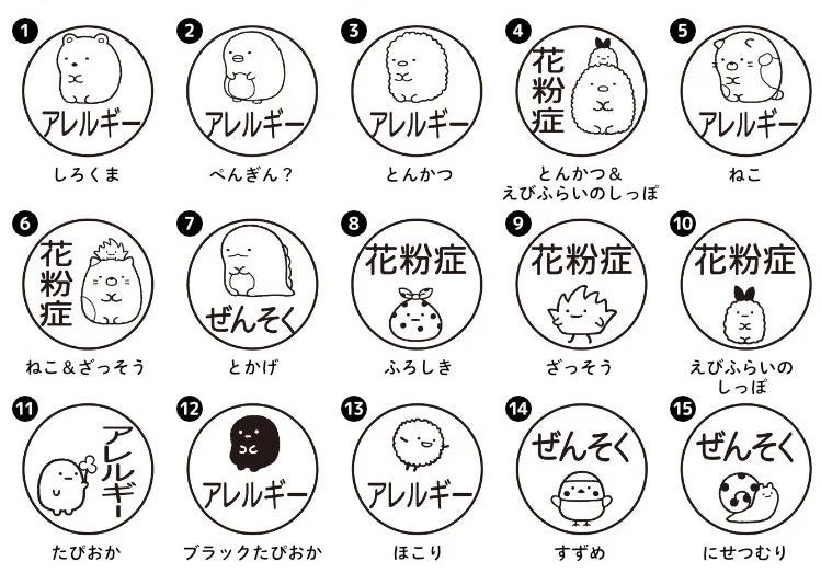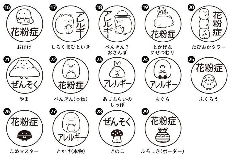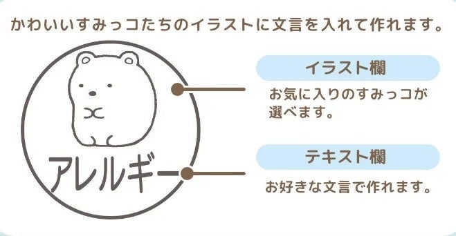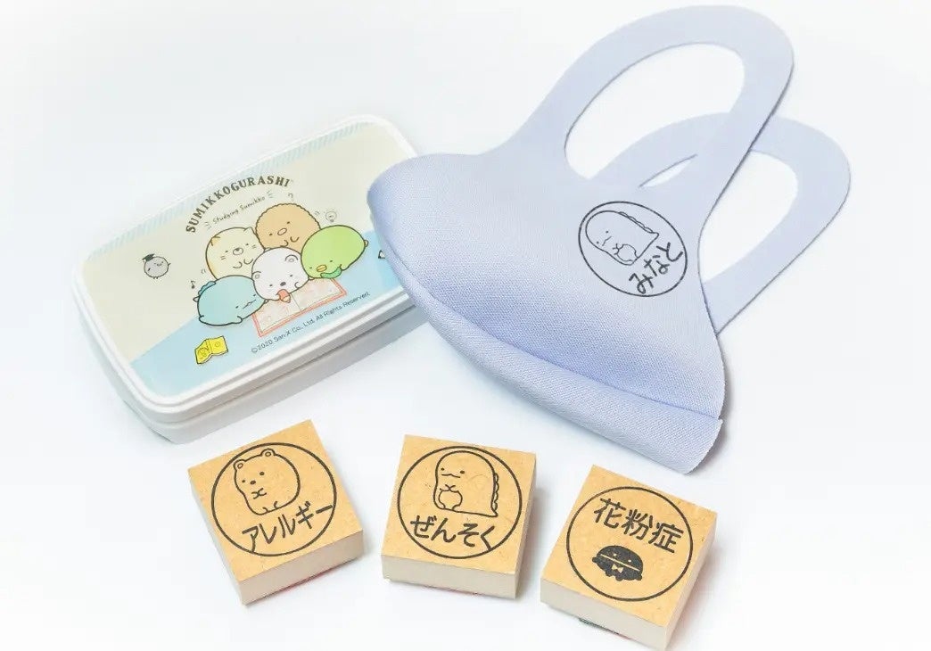 ”花粉症”や”ぜんそく”、”アレルギー”といった言葉を、かわいらしいすみっコたちのイラストと一緒にマスクにスタンプすることで、まわりの人からの誤解を予防しながら、お互いの不安を軽くすることができます。