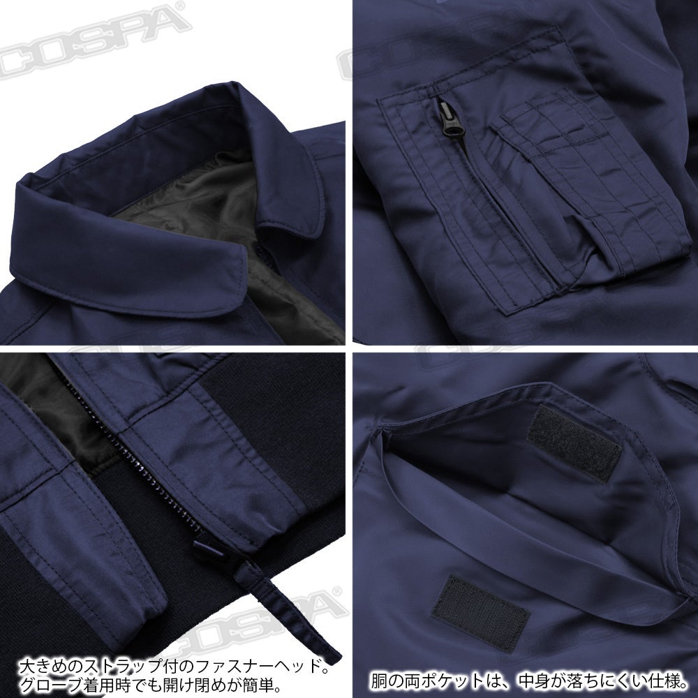 風防となる袖の二段リブ、中身の出ずらいポケット形状、グローブの上からでも扱いやすい大き目ファスナーヘッド、フライトジャケットらしい袖ポケットに襟周りの形状など「こだわり」が詰め込まれた一品。