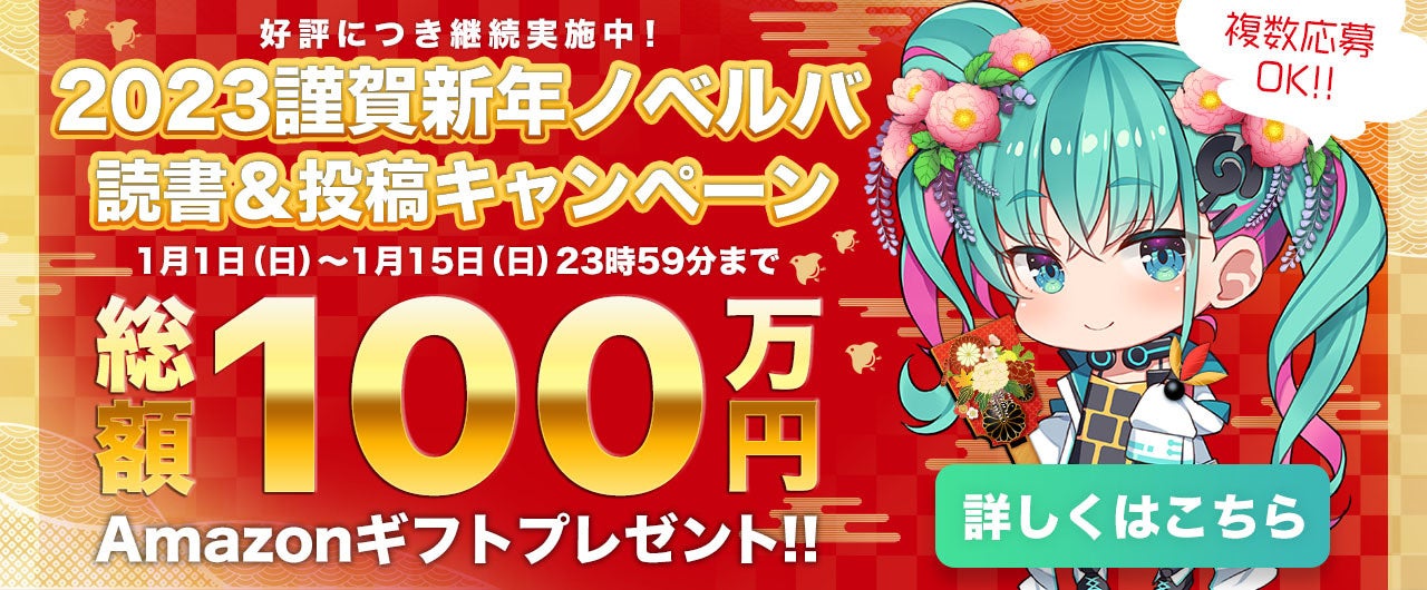 昨年末に開催し、ご好評をいただいた『総額100万円が当たる!ノベルバ年末大感謝祭 読書&投稿キャンペーン』の第2弾が開催決定!