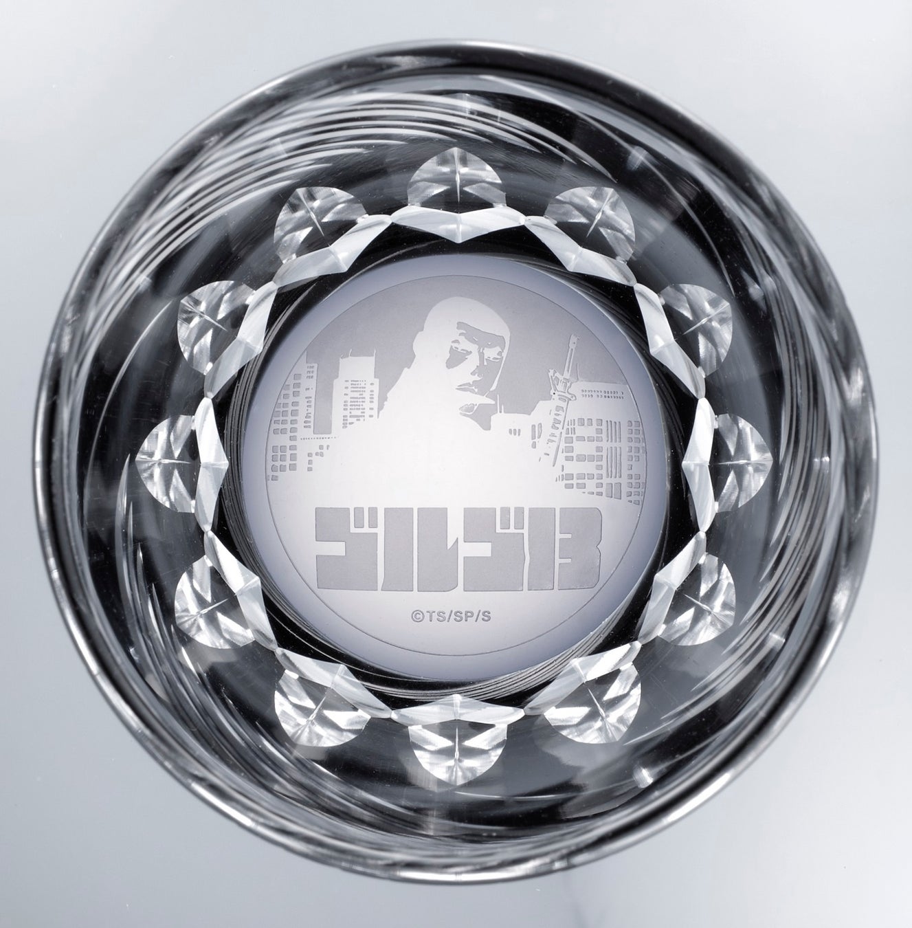 グラスを真上から見ると、まるで銃口をのぞきこんでいるようなイメージのデザインです。底にはサンドブラスト加工による『ゴルゴ13』のロゴとイラストが描かれます。