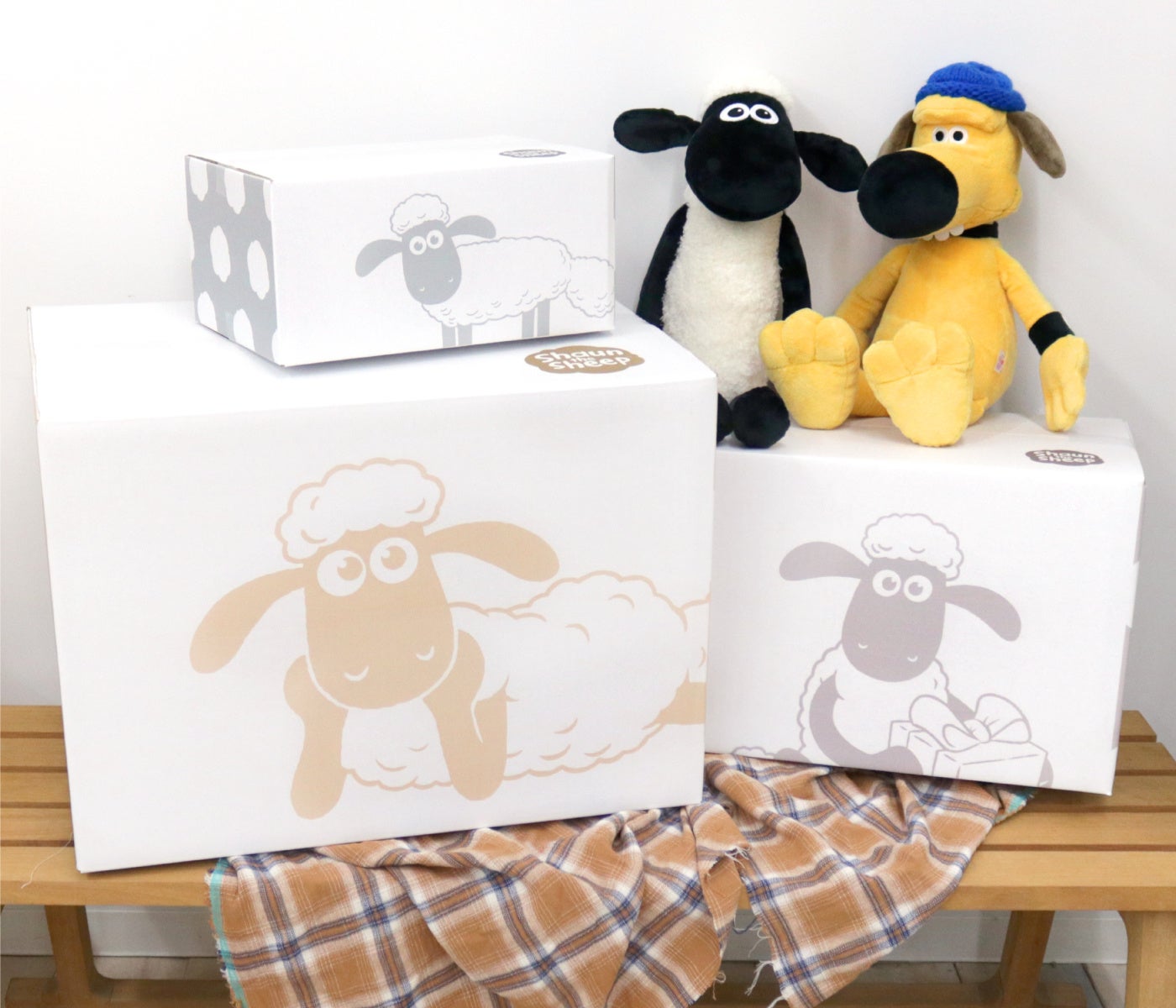 1月14日(土)00:00以降にご注文いただいたお客様にはショーンがプリントされたオリジナル配送ボックスにて商品をお届けします。サイズは全5種類。配送の役目を終えた後には収納ボックスとしても使えるように落ち着いた配色です。ショーン以外のキャラクターたちもどこかに隠れているなど、商品が届くのが楽しみになるデザインです。