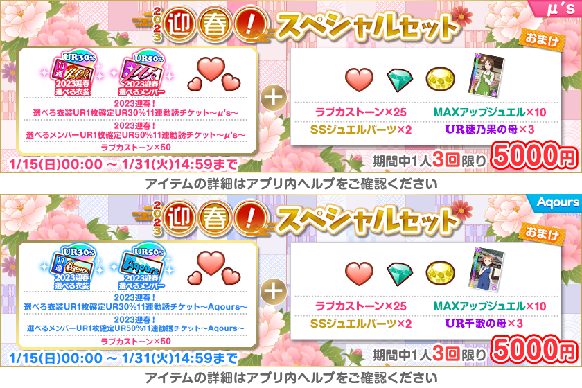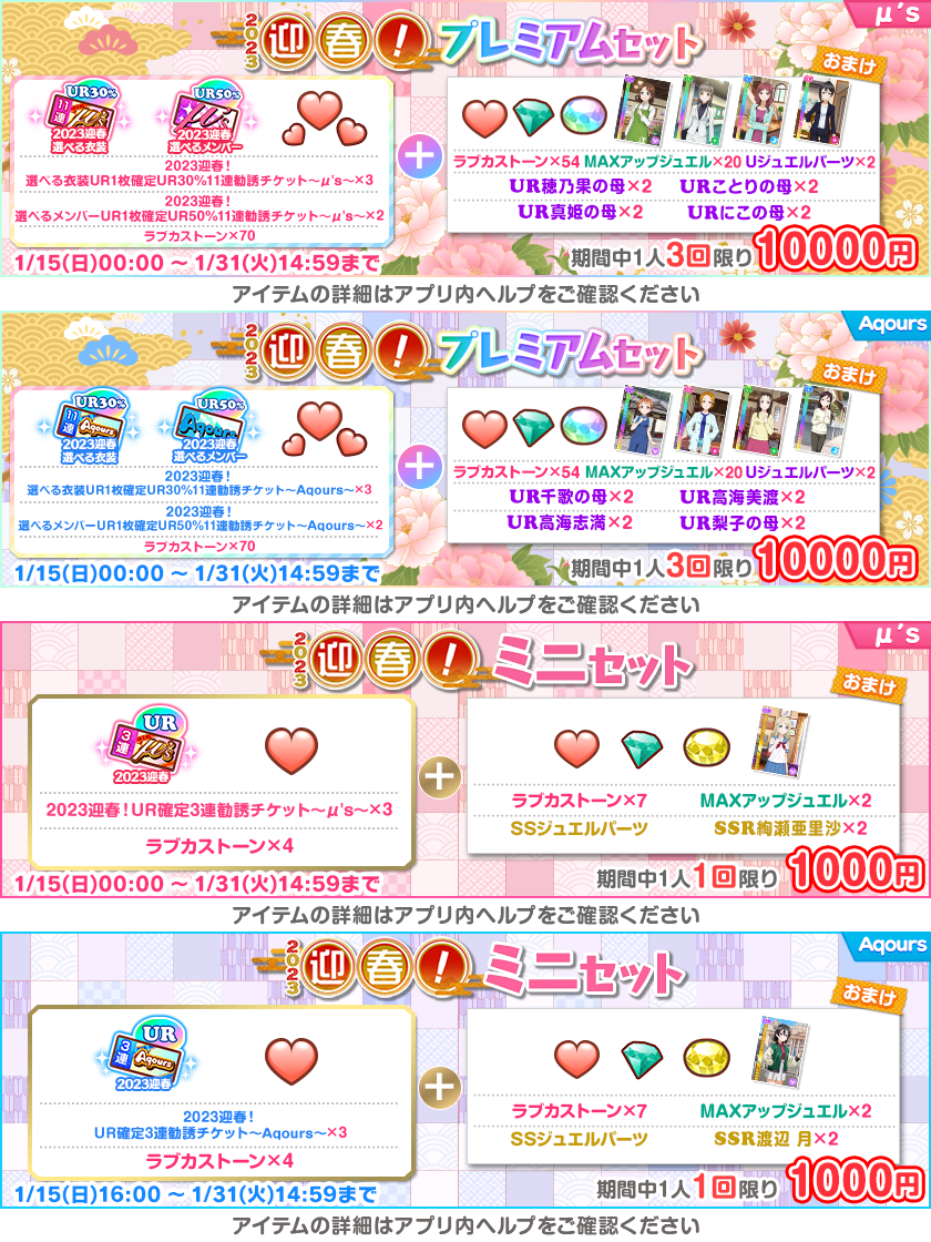 ・2023迎春!選べるメンバーUR1枚確定UR50%11連勧誘チケット〜μ’s〜