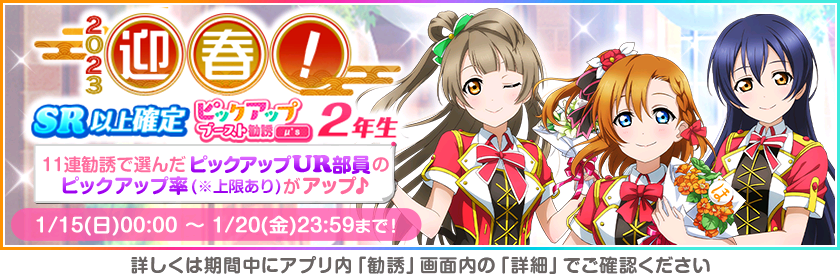 ・2023迎春!選べる衣装UR1枚確定UR30%11連勧誘チケット〜μ’s〜