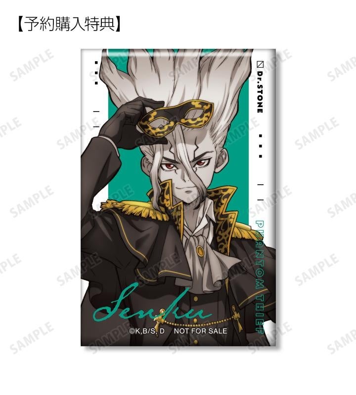 当商品を1BOX、または単品にて1BOX相当数ご注文ごとに、予約購入特典として「描き下ろしイラスト 石神千空 怪盗団ver. スクエア缶バッジ AMNIBUS限定特典」を付属いたします。