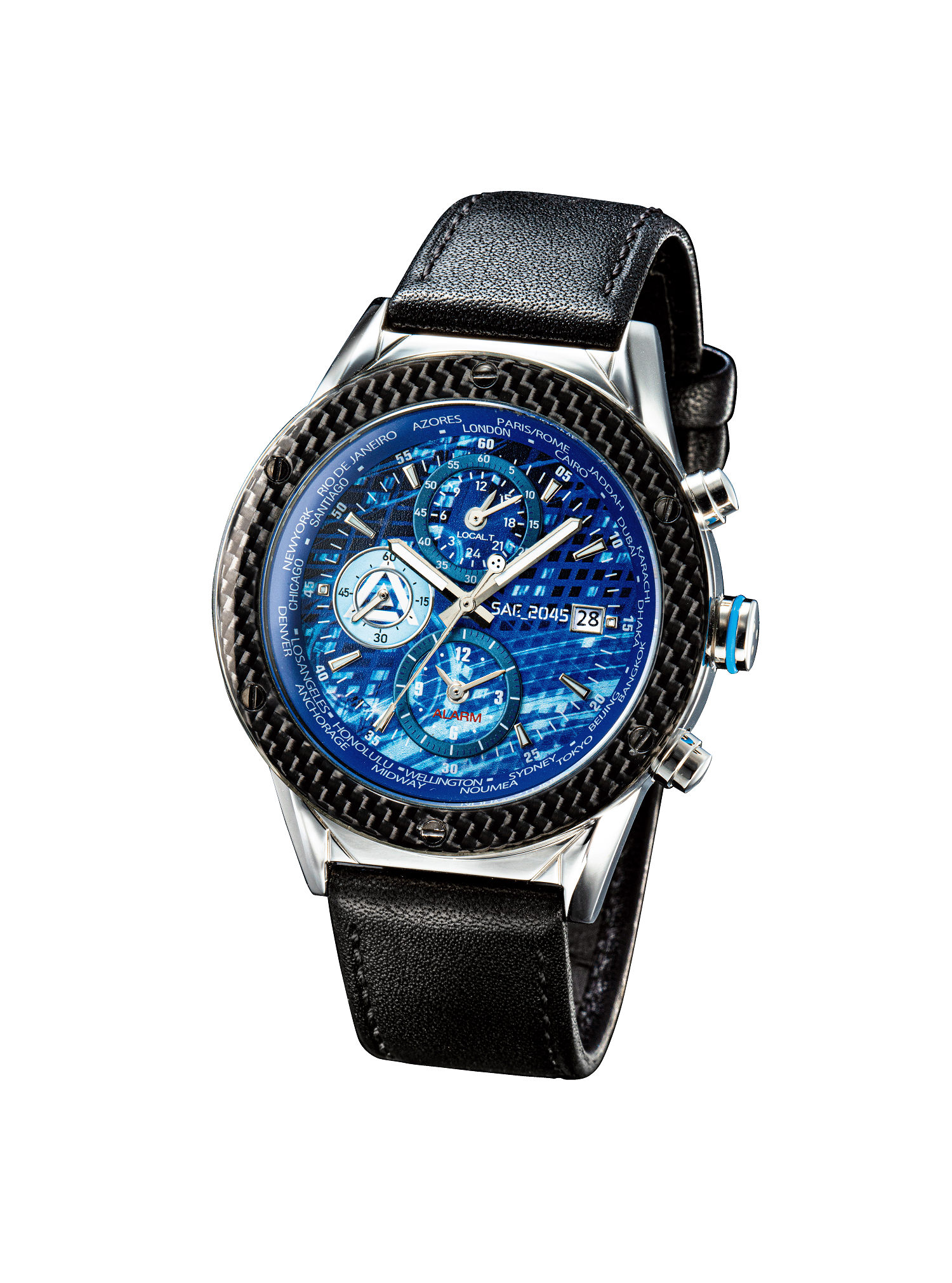電脳空間をイメージしたサイバーブルーの文字盤がクールなオフィシャルウォッチ。