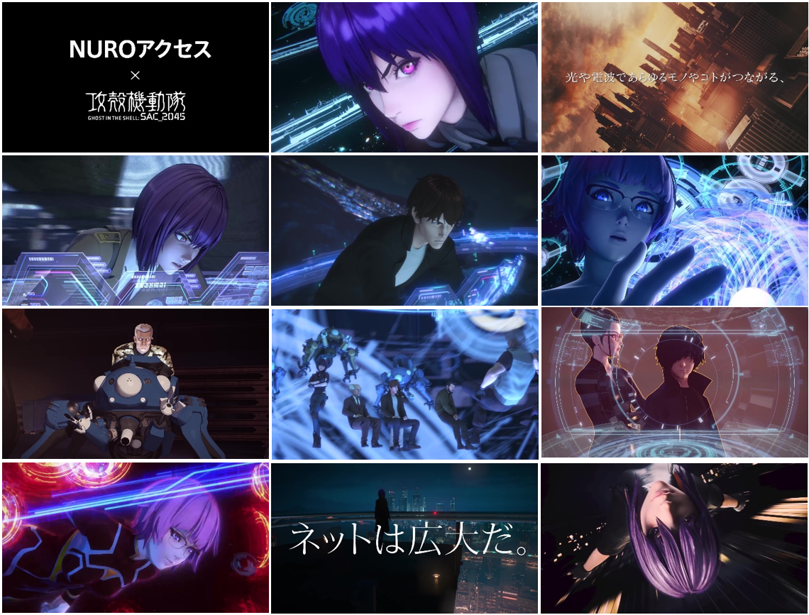 「NUROアクセス」と「攻殻機動隊 SAC_2045」のコラボムービーを公開いたします。「ネットは広大だ」というテーマのもと、動画には「攻殻機動隊 SAC_2045」のメインキャラクターたちが勢ぞろい。作中のシーンとリンクさせて、攻殻機動隊が通信で日本のビジネスを支えている世界を表現し、「ネットにアクセスするとき、NUROアクセスは必ずあなたのそばにいる」というメッセージを伝えています。