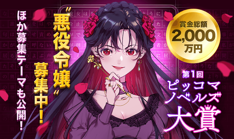 「ピッコマノベルズ大賞」は、電子マンガ・ノベルサービス「ピッコマ」が初めて開催する、ノベル作品コンテストです。1年を通じて、計4シーズンでそれぞれテーマが異なる作品を募集し、各シーズン毎に行われる1次審査と、2次審査を経て受賞作を決定いたします。現在ピッコマでは、1/31(火)まで、第1シーズンのテーマ“西洋風ロマンスファンタジー×悪役令嬢”ジャンルの作品募集を行なっております。
