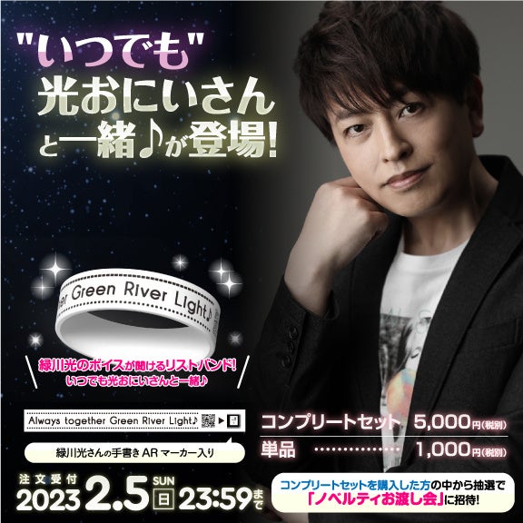 声優の緑川光さんのボイスがいつでも楽しめるラバーバンド「”いつでも”光おにいさんと一緒♪」を、1月18日(水)より「ドワンゴジェイピーストア」「アニメイト通販」にて期間限定で販売いたします。
