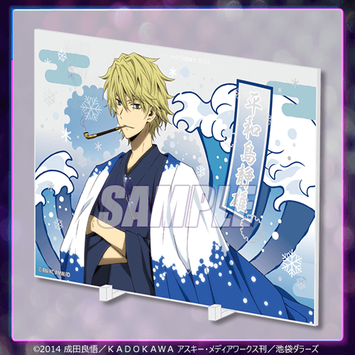商品は平和島静雄の誕生日を記念した、平和島静雄のイラストのみのオリジナルグッズとなります。誕生日を豪華に彩る等身大布ポスターや箔押し仕様のアクリルパネル、キラキラと輝き誕生日気分を盛り上げるバースデーペンライトなど、ここでしか手に入らないアイテムが盛り沢山です。また、誕生日当日限定で、【10連セット】購入時にホログラム缶バッジも配布します!静雄の新たな魅力を描いた描きおろしイラストの商品や、可愛いミニキャラの商品など、静雄の魅力をを詰め込んだ商品と共に、ぜひ静雄の誕生日を祝いましょう!