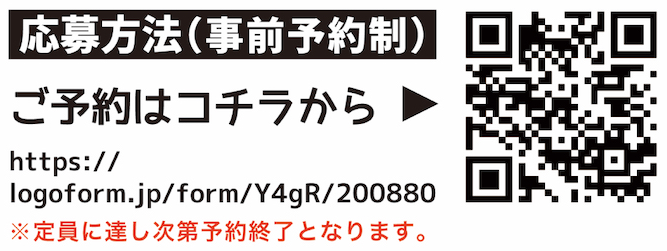 応募方法 : イベントへのご参加は事前予約制となります。下記のバーコードよりお申し込みください。