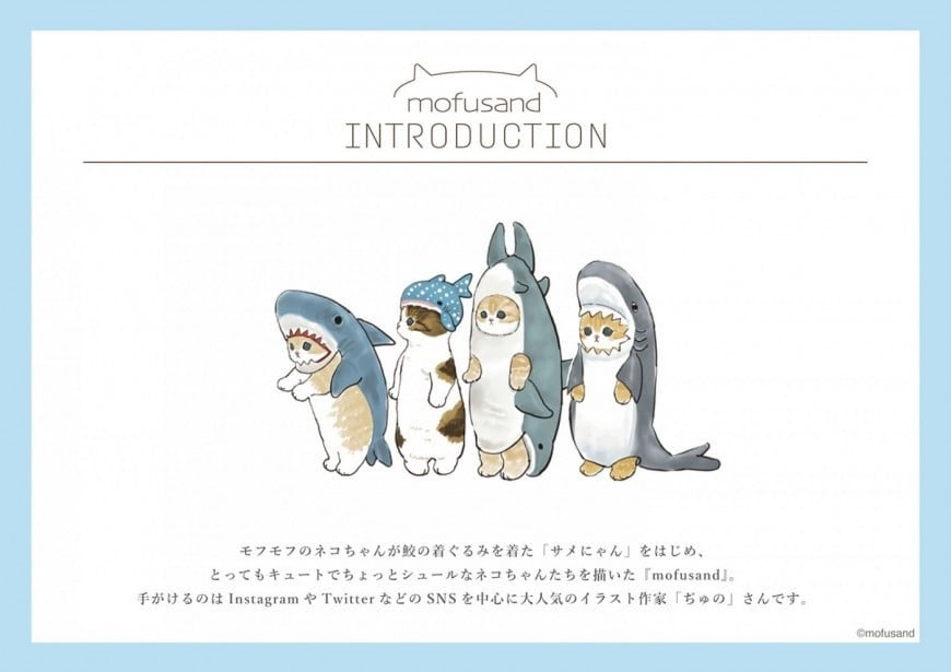 モフモフのネコちゃんが鮫の着ぐるみを着た「サメにゃん」をはじめ、とってもキュートでちょっとシュールなネコちゃんたちを描いた「mofusand」。手がけるのはInstagramやTwitterなどのSNSを中心に大人気のイラスト作家 ぢゅのさんです。