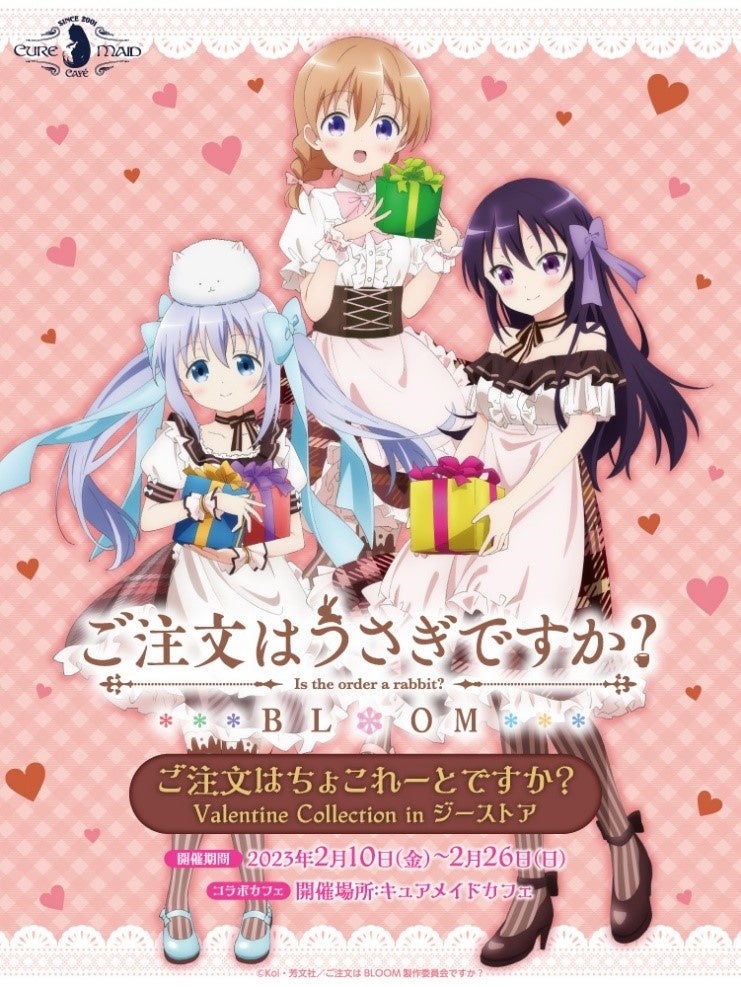 全国のジーストアにて開催される「ご注文はうさぎですか? BLOOM」のポップアップショプ、「ご注文はちょこれーとですか?Valentine Collection in ジーストア」を記念して、キュアメイドカフェでもコラボカフェが開催決定!