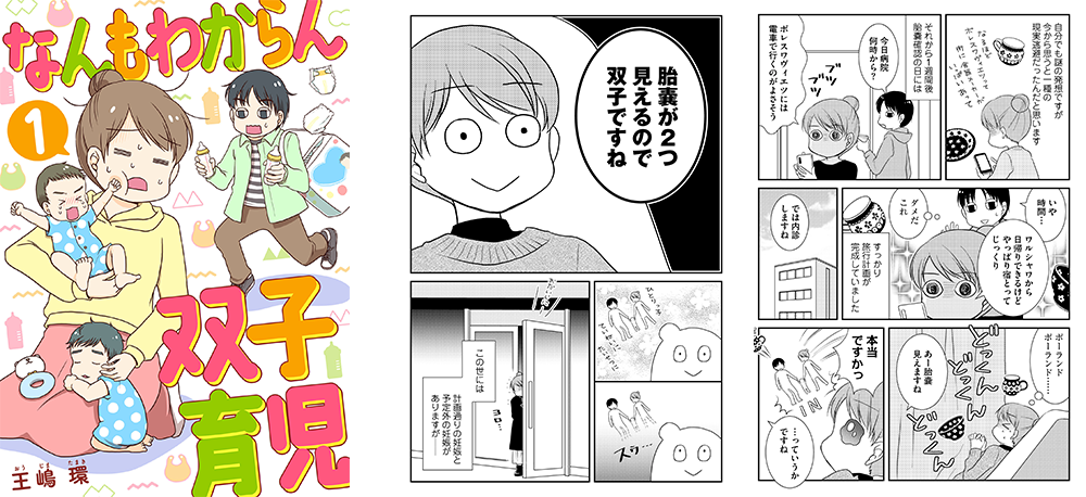 ・作品概要:漫画家夫婦のもとにやってきた赤ちゃんは、まさかの双子!ちょっとお腹が大きくなるだけと思っていたのに、ハイリスクで1か月以上入院?早産の可能性!?産まれたら哺乳瓶も肌着も、粉ミルクも紙おむつもとにかく何でも2倍!?さらに未知の感染症でマタニティクラスが閉鎖して、双子育児のことが何もわからない!「なんもわからん」まま突き進む、王嶋環の双子育児エッセイ!!