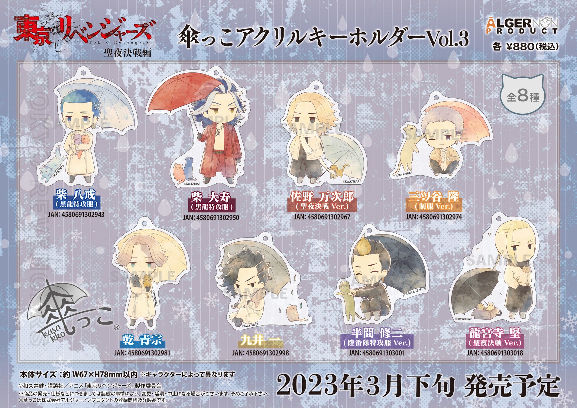 ・東京リベンジャーズ聖夜決戦編 傘っこキーホルダー vol.3(全8種) 各880円(税込)