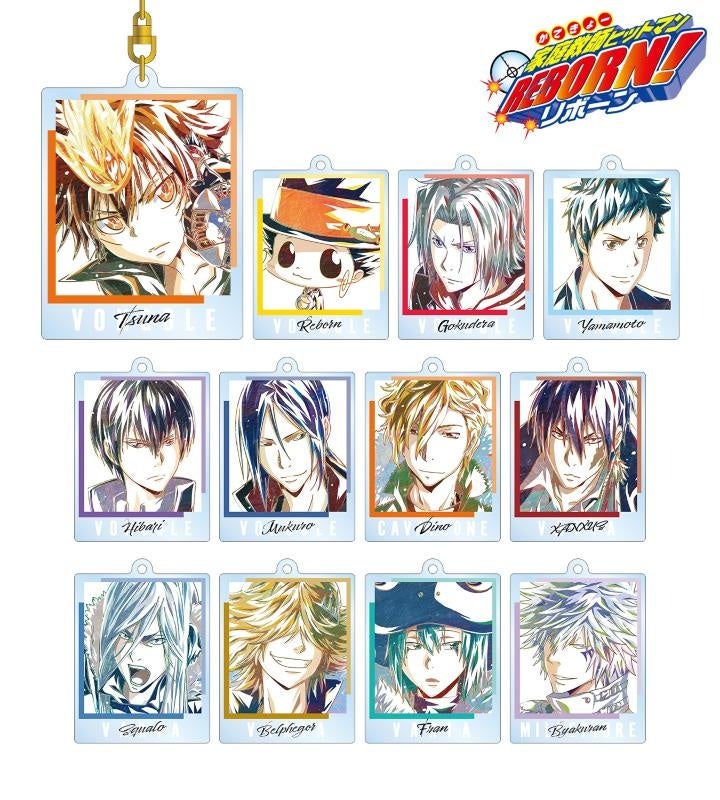 沢田 綱吉、リボーン、獄寺 隼人、山本 武、雲雀 恭弥、六道 骸(10年後)、ディーノ(10年後)、XANXUS(10年後)、スペルビ・スクアーロ(10年後)、ベルフェゴール(10年後)、フラン、白蘭を新たなタッチで魅力的に表現し、アクリルキーホルダーに仕上げました。