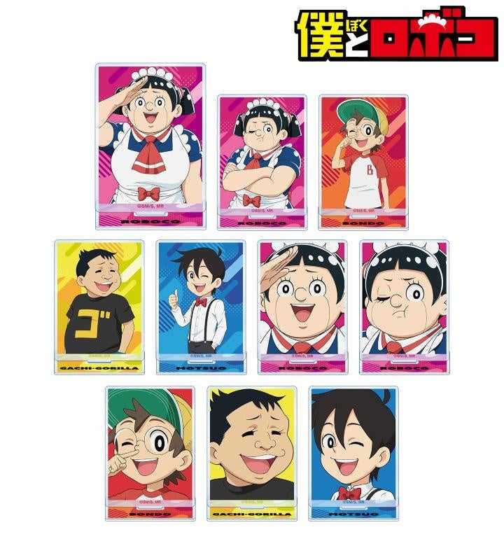ロボコ、ボンド、ガチゴリラ、モツオと作中のセリフをパーツ付きのBIGなアクリルスタンドに仕上げました。