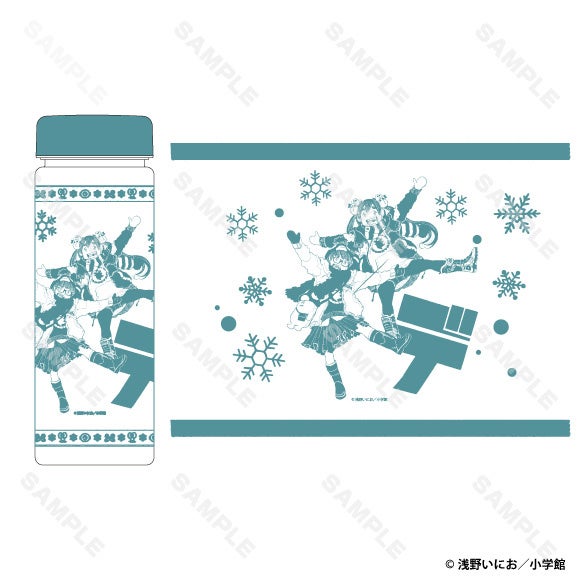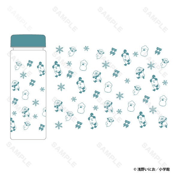 「デッドデッドデーモンズデデデデデストラクション」より、クリアボトルの登場です。浅野いにお先生による描き下ろしイラストを使用し、門出&おんたん柄とイソベやんズ総柄の2柄展開しました。雪をイメージしたライトブルーの配色がデザインを引き立たせています。