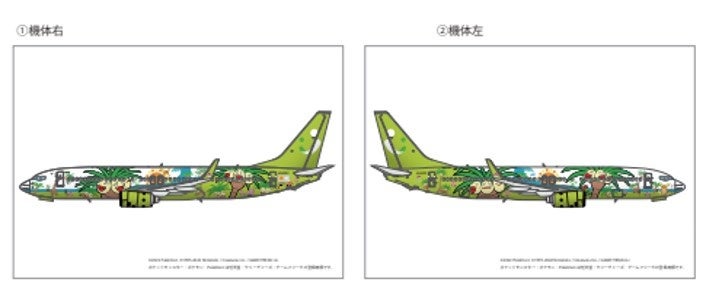 東京(羽田)-宮崎線をはじめとする、ソラシドエアの全就航路線で宮崎だいすきポケモン「ナッシー」がデザインされた特別塗装機が就航します。ヘッドレストカバーや紙コップ、エプロンも特別仕様となっており、宮崎らしいデザインで機内も彩られます。