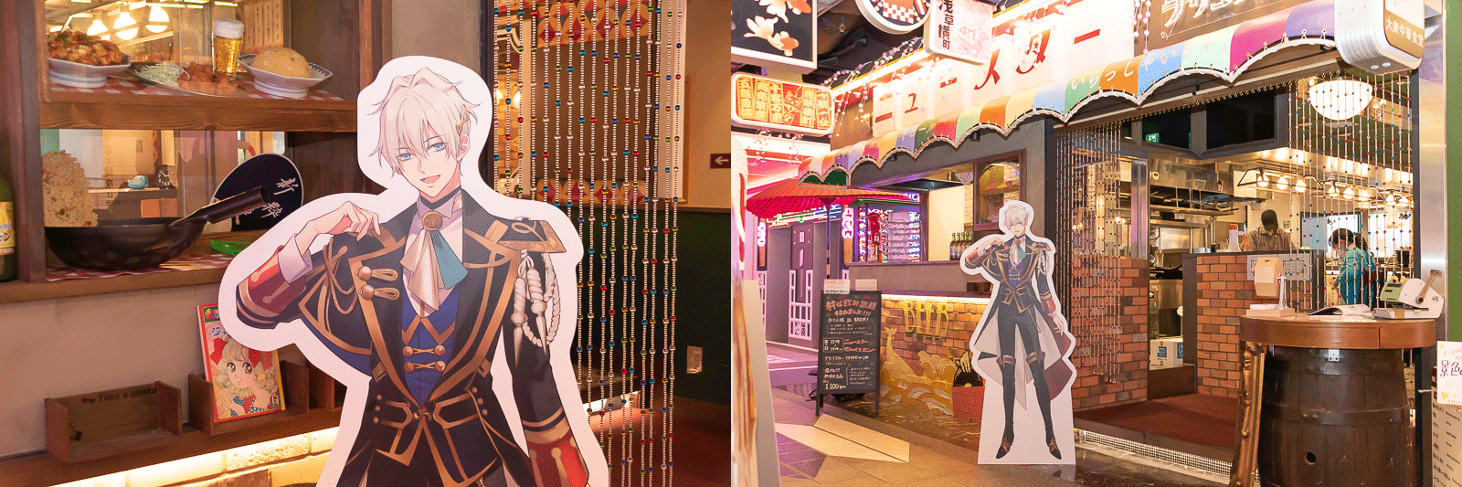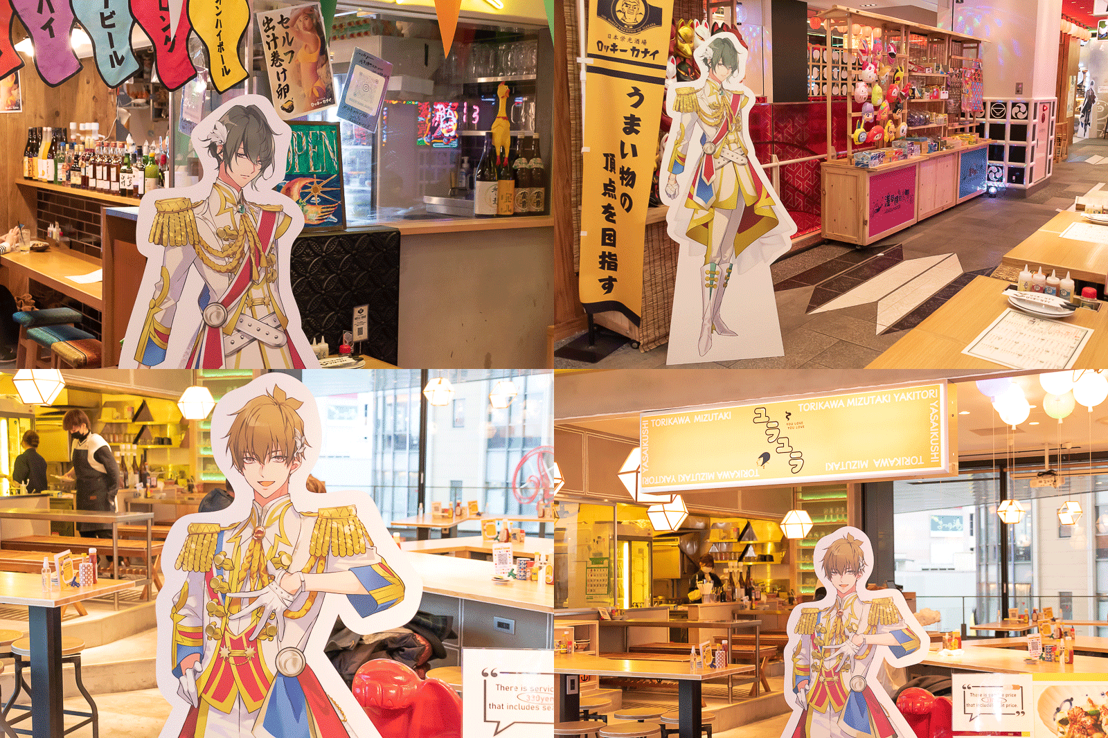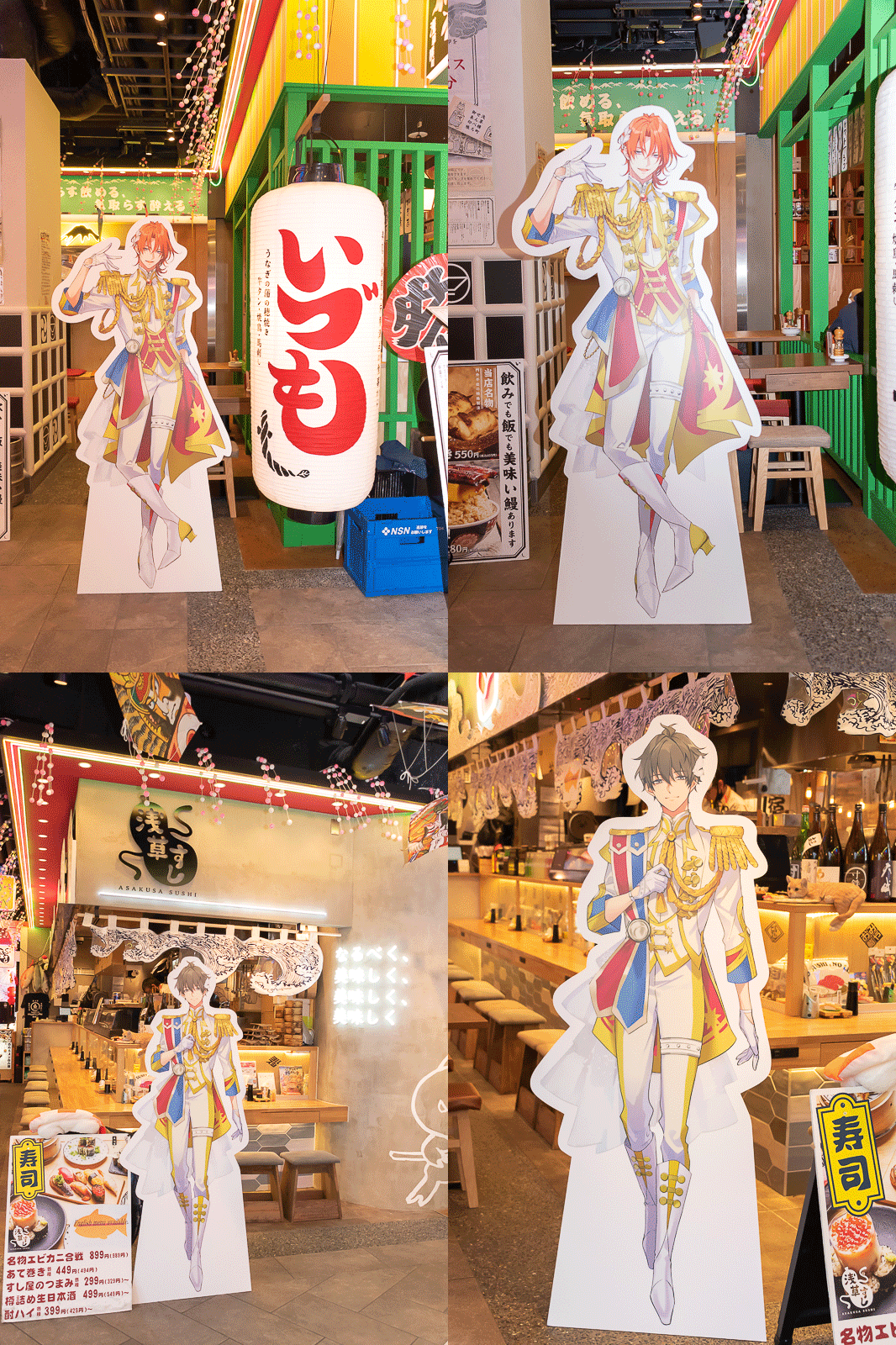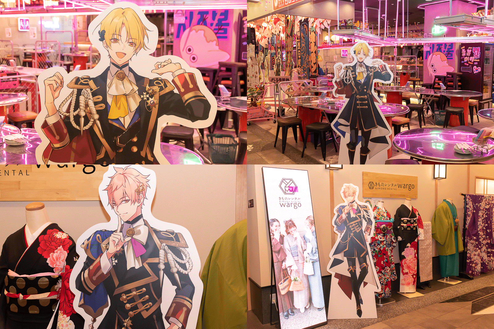 浅草横町内コラボ飲食店、きものレンタルwargo 東京浅草店、フロアイベントスペースには、『ツキウタ。』メンバーのパネルが展示されています。