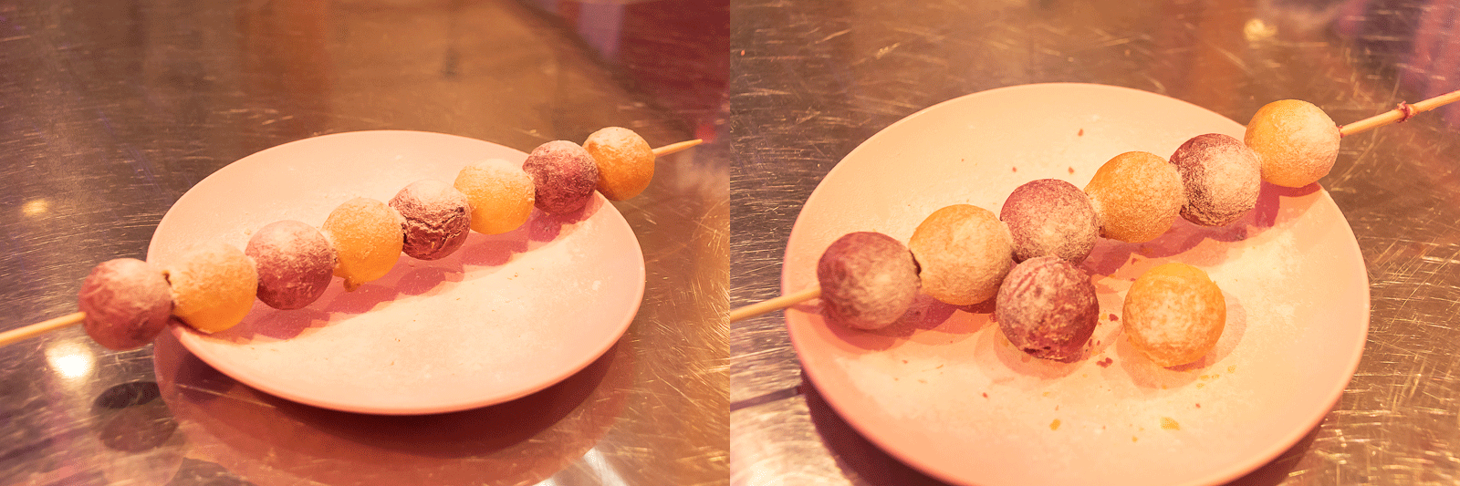 密かに話題となっているアジアンスイーツの「QQボール」。サツマイモのペーストが練りこまれたドーナツは、外はカリカリ、中はふわふわ。もっちりとした食感に仕上がっており、女性に特におすすめの一品となっています。また、QQボールにはハニーパウダーがまぶされており、蜂蜜のほのかな香りと柔らかい甘さは、デザートとしてもピッタリです。