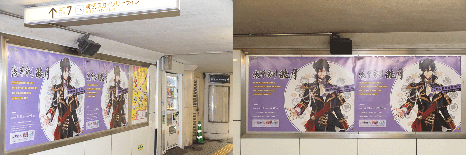 本イベントでは、オリジナルラッピングを施した人力車の運行や、浅草横町の各飲食店でのオリジナルコラボメニューの提供や、各メンバーのパネルが展示中。さらに、浅草駅の構内では、駅広告が掲載中です。