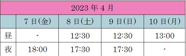 [大阪公演] 2023年4月7日(金)~4月10日(月)