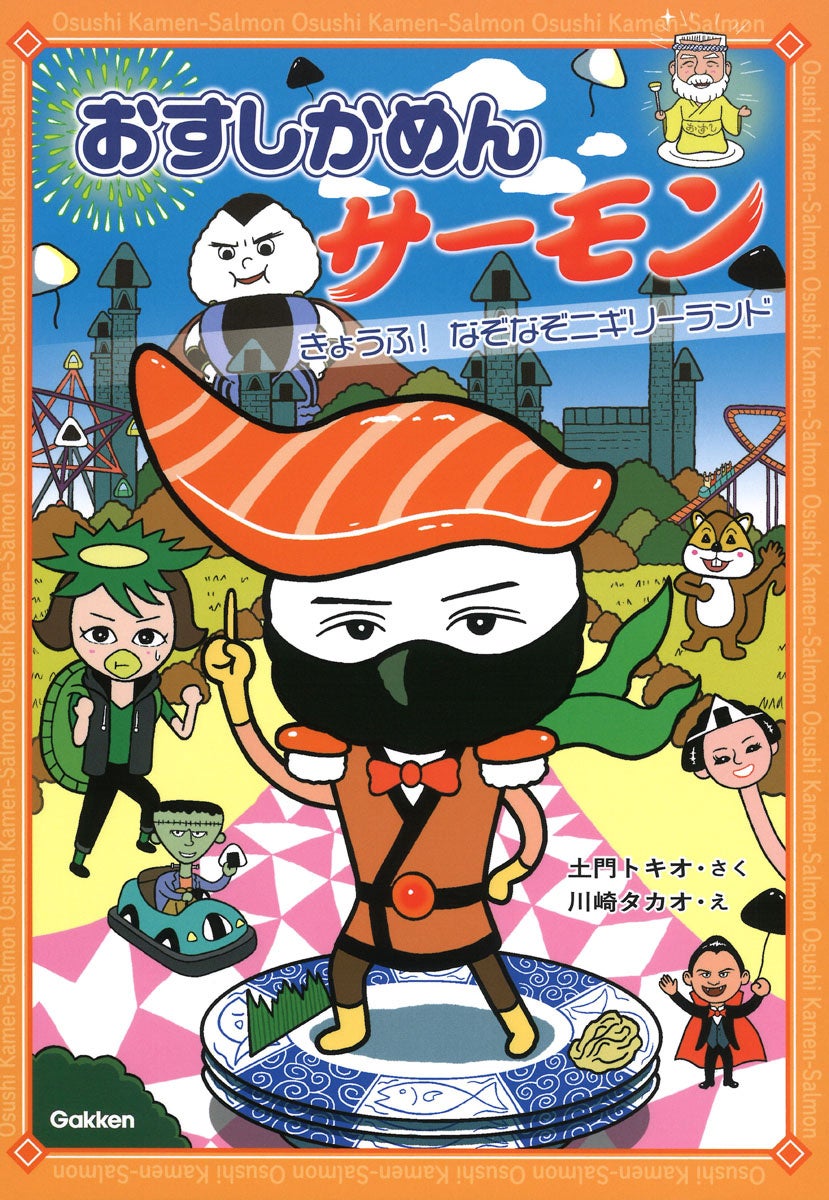なぞなぞや迷路、パズルなどのさまざまな遊びをモチーフにした低学年向け読み物シリーズ。主人公の気弱な小学生スシオが「ハイパーワサビ」を頭に塗ることで、おすしがモチーフのヒーロー「おすしかめんサーモン」に変身。「イクラフラッシュ」などの個性的な技を使っておばけや妖怪たちとたたかう姿はもちろん、とつぜん出てくるシュールなギャグなど親子で楽しめる作品です。
