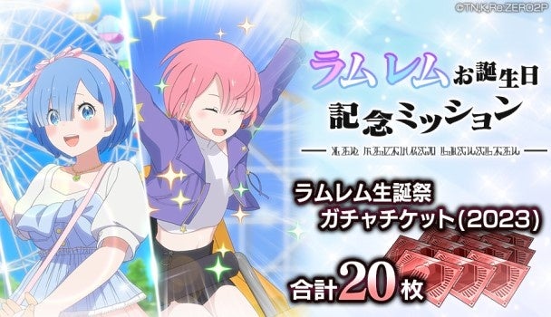 内容:ラムとレムのお誕生日を記念して、「ラムレム生誕祭ガチャチケット(2023)」合計20枚が手に入るミッションを開催します。
