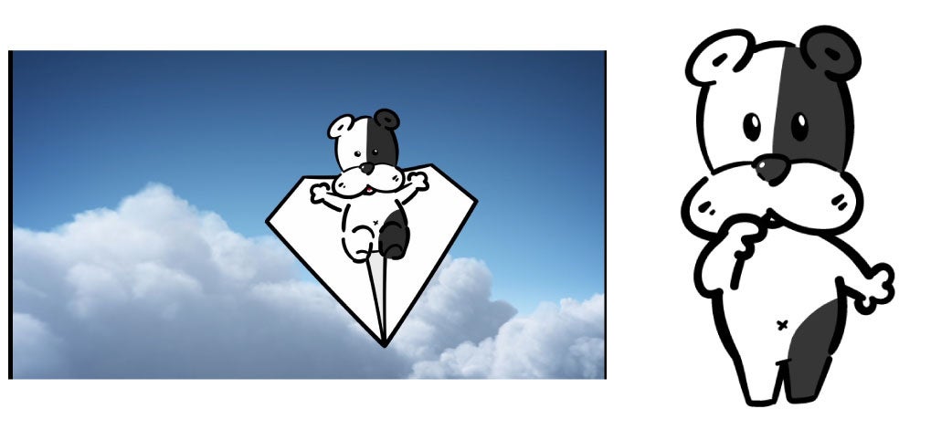 ちょっぴり怖がりで、少しドジ、だけど、みんなの夢を応援するのが大好きな犬。子どもたちの成長や夢を応援するため、紙飛行機に乗って宇宙から地球にやってきます。