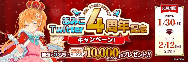 大網株式会社(本社・東京都文京区)は、自社が運営するホビーショップ「あみあみ」のイメージキャラクター『あみこ』の、Twitterアカウント4周年を記念してキャンペーンを開催いたします。