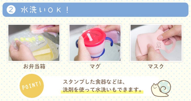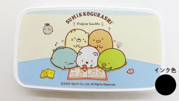 布やプラスチック、ビニール、金属などあらゆる素材にスタンプできる専用インクは、かわいいすみっコたちがなかよくお勉強しているようなとってもキュートなデザイン。インクは速乾性・耐水性にすぐれ、お洗濯や洗い物をしても落ちにくいのが特徴です。