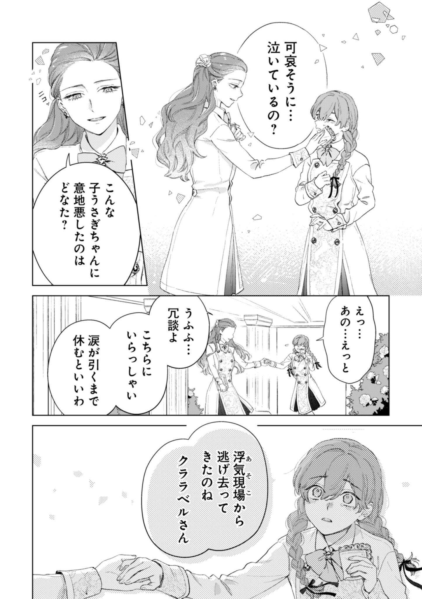 ショックで泣いていたところ、第三王子の婚約者・ヴィクトリアに慰められる。