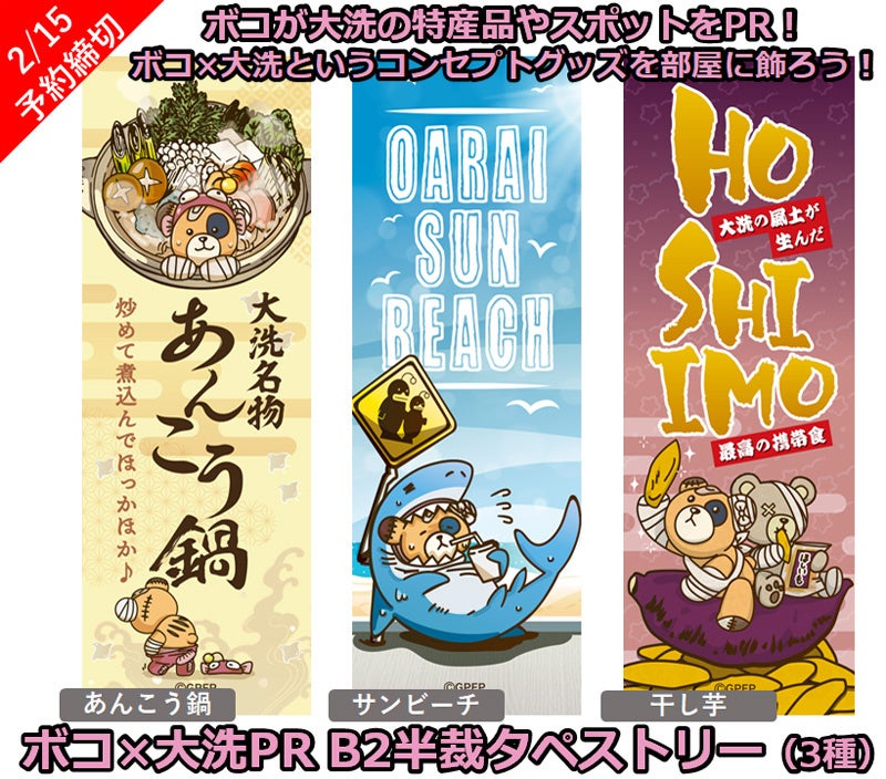 - 【予約商品】ボコ×大洗PR B2半裁タペストリー(3種) 各2,500円(税込)
