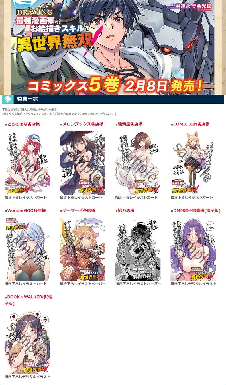 - 『ドローイング 最強漫画家はお絵描きスキルで異世界無双する!』 原作:林達永/作画:金光鉉